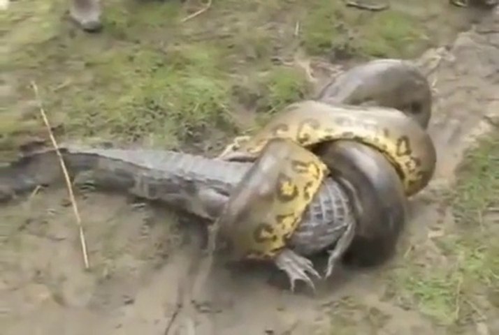 dev pitonun koca bir timsahi yuttugu